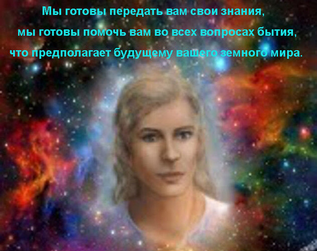 «Для тех из вас, кто на протяжении длительного времени окунался и вникал в послания различных Структурных образований, что направлены в помощь живущим на планете Земля в период Эволюционного перестроения, наше послание. Поймите, дорогие земляне, реорганизация земной жизни не так проста. Веками установленные правила порой приводят к абсурду ваше сознание, поскольку вы уже начинаете кое-что понимать. Сегодня мы немного расширим ваши знания. Желаем, чтобы в вашем сознании отметилось, что это так. И пусть кодо-пакеты способствуют дальнейшему развитию и продвижению в пути. И где ваши цели имеют принципы Божественные, там будет всё в быстром варианте происходить.»